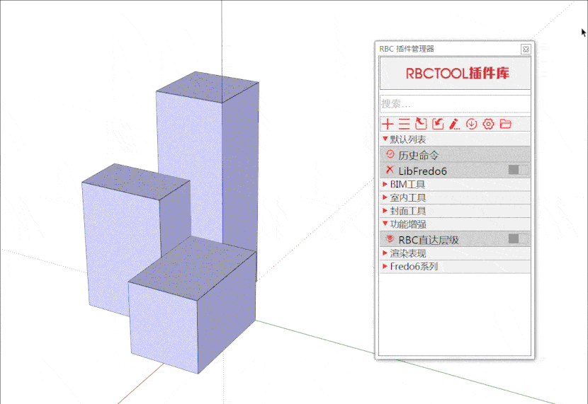 我们在SketchUp中编辑嵌套层级较多的组件或群组时,就要一层一层点击才能选择想要编辑的对象,这样的操作在实际工作中是降低效率的,今天给大家分享的RBC_ToLevel(RBC 直达层级)插件,这个插件可以很好的解决这一问题。