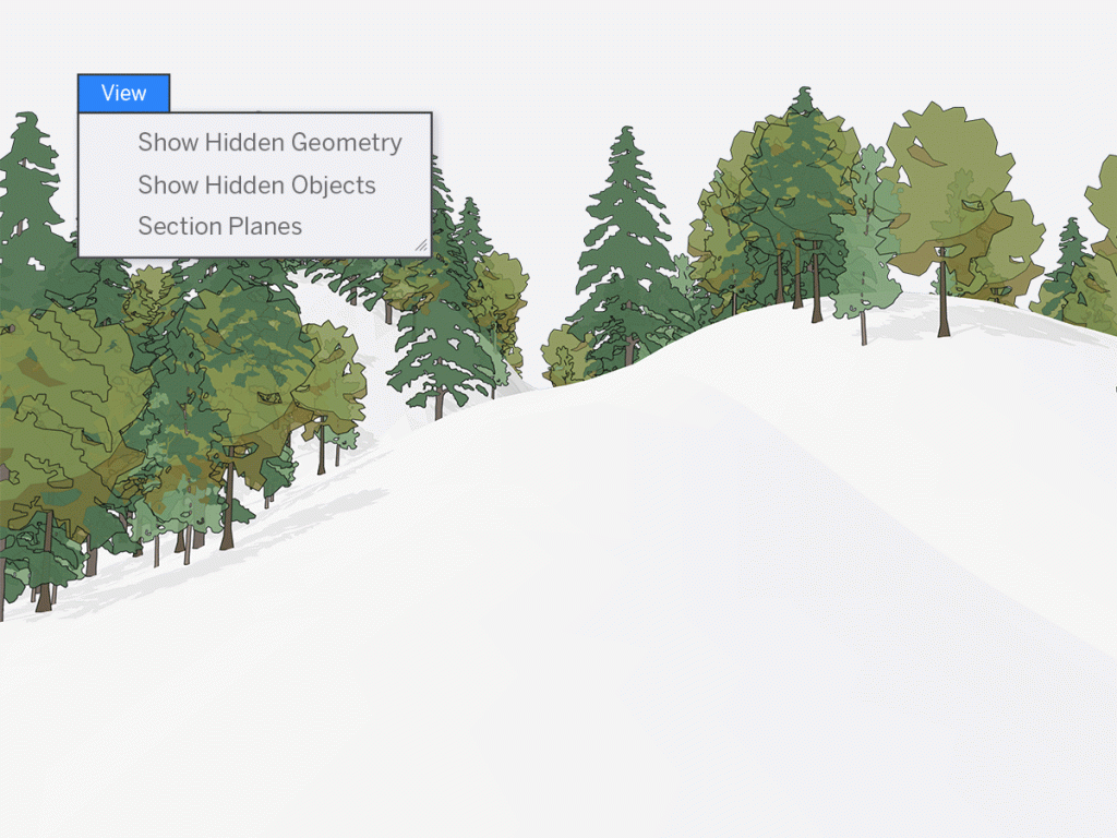 我们对模型中的隐藏对象进行了很大的更改!您会在下拉菜单中发现,我们将隐藏对象与隐藏几何分开了。这对您的工作流程意味着什么呢?这将使您能够更好地管理隐藏的几何图形和隐藏的对象,从而获得更轻松的建模体验。例如,假设您要编辑景观或平滑表面中的隐藏边缘,但仍然希望能够隐藏附近的对象(例如树木,灌木丛或建筑物)…现在可以办到了!